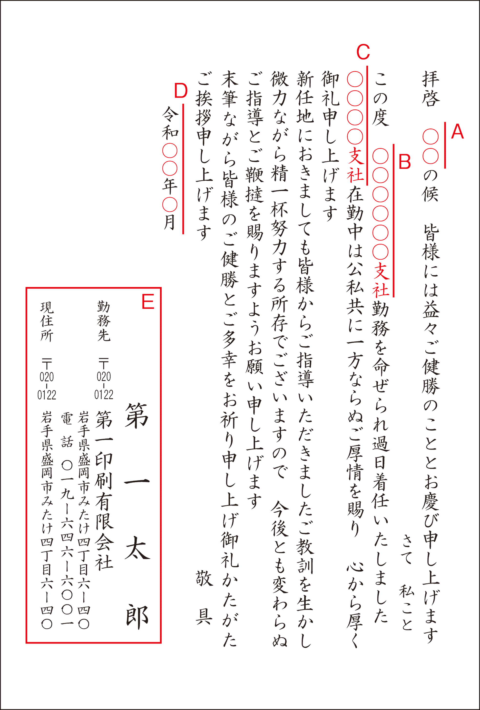 ●転勤挨拶状 ※文面をクリックすると拡大します。