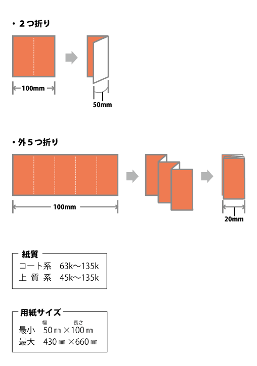 ・2つ折、巻き折、蛇腹折、様々な折り方で小さなサイズのものを折ることができます。
